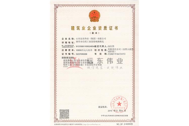 建筑幕墻工程專業(yè)承包壹級 建筑裝修裝飾工程專業(yè)承包貳級 2023-09-13 09:21:23 上一條:塑料窗節(jié)能認證證書 下一條: 企業(yè)集團登記證 相關資訊 夯實基礎·砥礪奮進 | 重慶龍... 正在施工的和新承接的項目情... 近年完成的類似項目情況表... 關于加強項目部農民工工資支... 熱門推薦 黃海明珠中心 濟寧運河城 開發(fā)區(qū)萬達廣場 中國重汽濟寧商用車有限公司