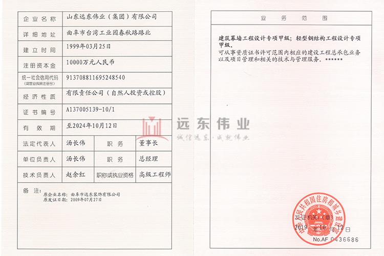 建筑幕墻工程設(shè)計(jì)專項(xiàng)甲級(jí) 輕鋼鋼結(jié)構(gòu)工程設(shè)計(jì)專項(xiàng)甲級(jí)